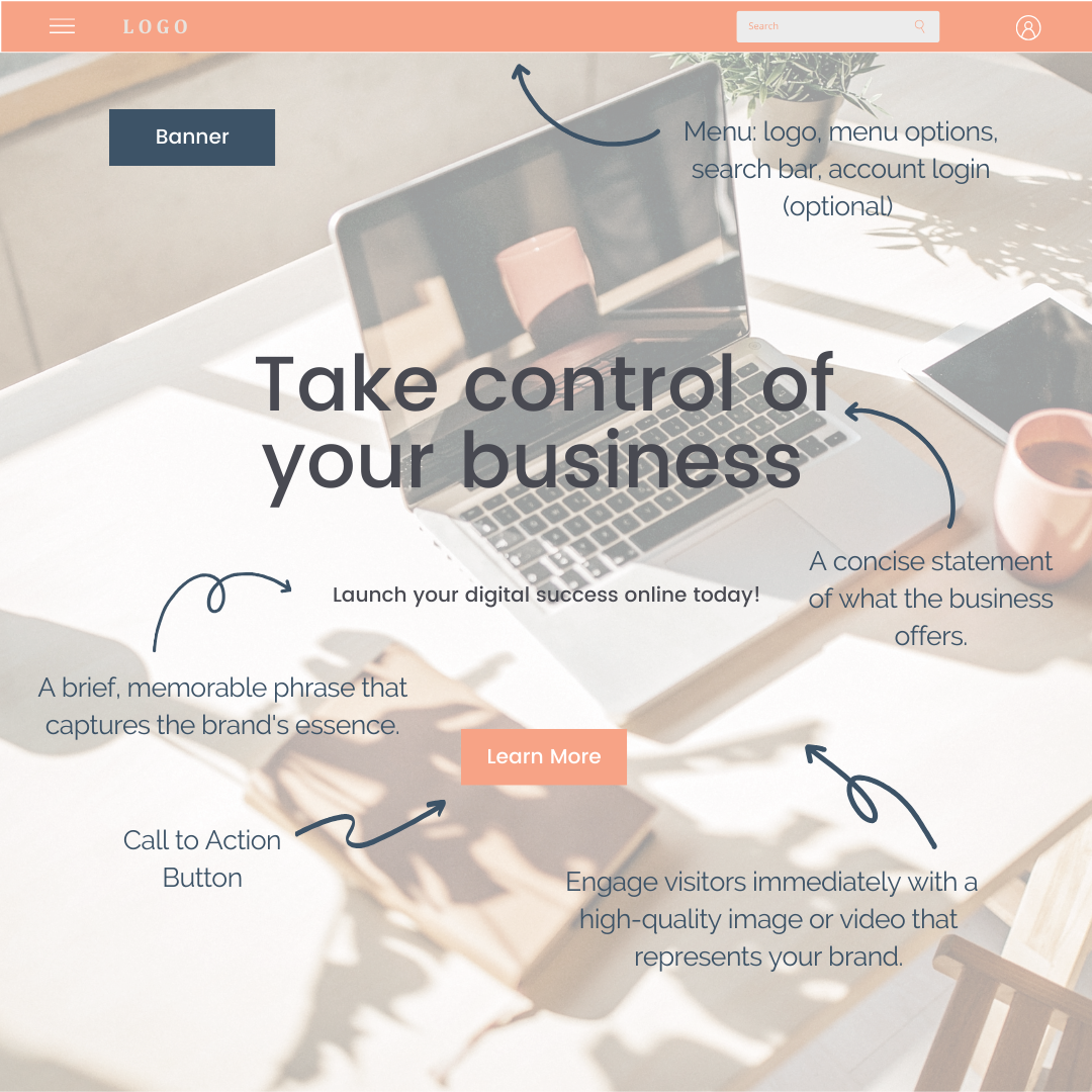 The hero section should include a high-quality banner image or video, a clear brand message, a compelling tagline, and a strong call to action (CTA) button. This section should be "above the fold," meaning visitors shouldn't have to scroll to see it. Highlight your Unique Selling Proposition (USP) here to immediately communicate what sets you apart.